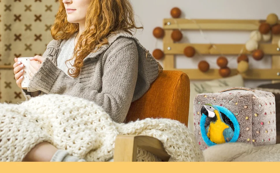 Cold-proof: the large size bird snuggle hut nest is made of thick plush lint material, well protect for your love birds against cold and keep warming, definitely a warm and comfortable haven.